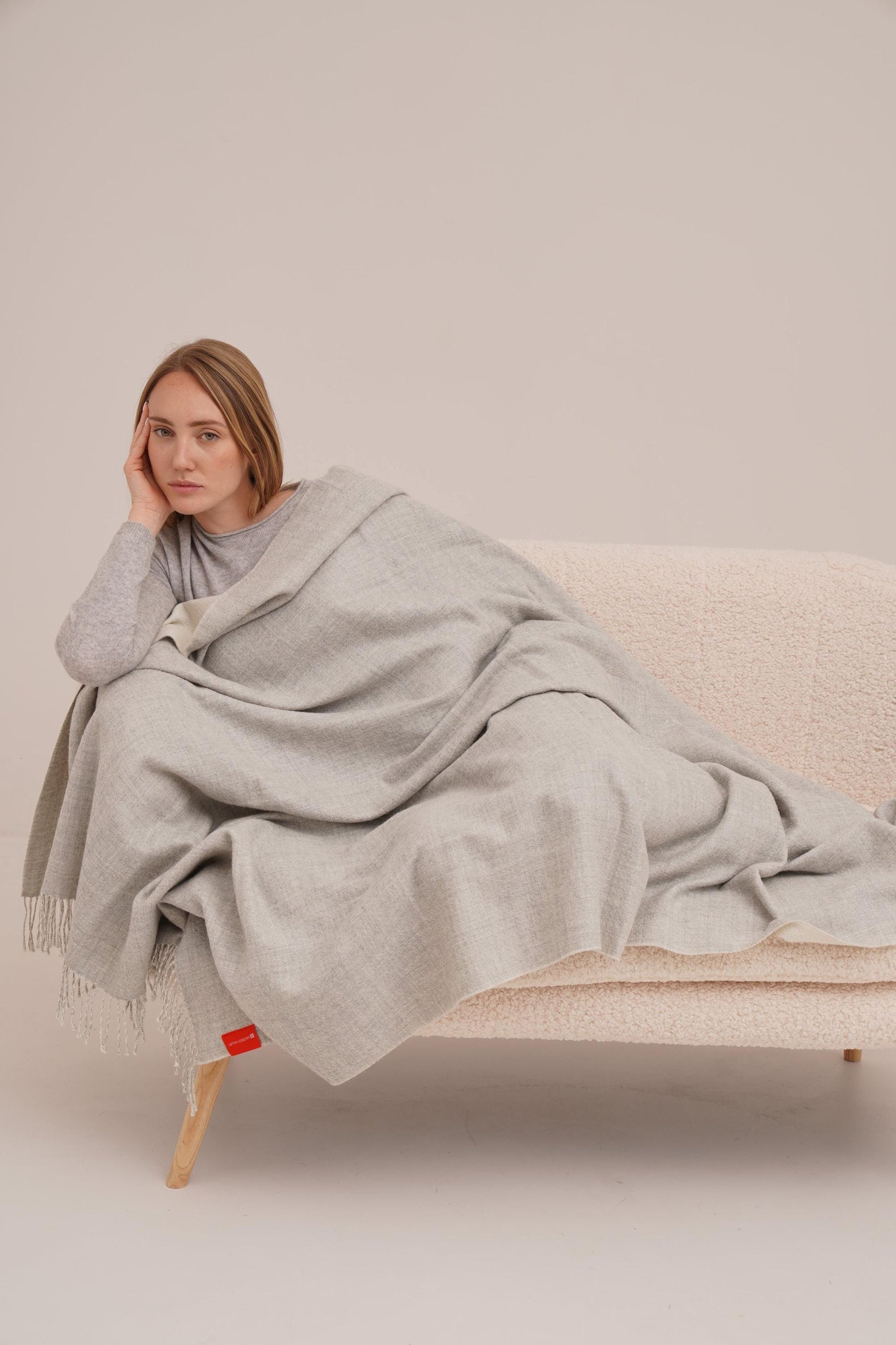 Covering yourself in winter comfort and warmth has never been so charming as with our 100% Royal alpaca Silver Reversible Blanket. This wool blanket is made with the precious Royal alpaca fibre, guaranteeing maximum softness and warmth. Its exceptional quality is unrivaled among double and winter blankets.